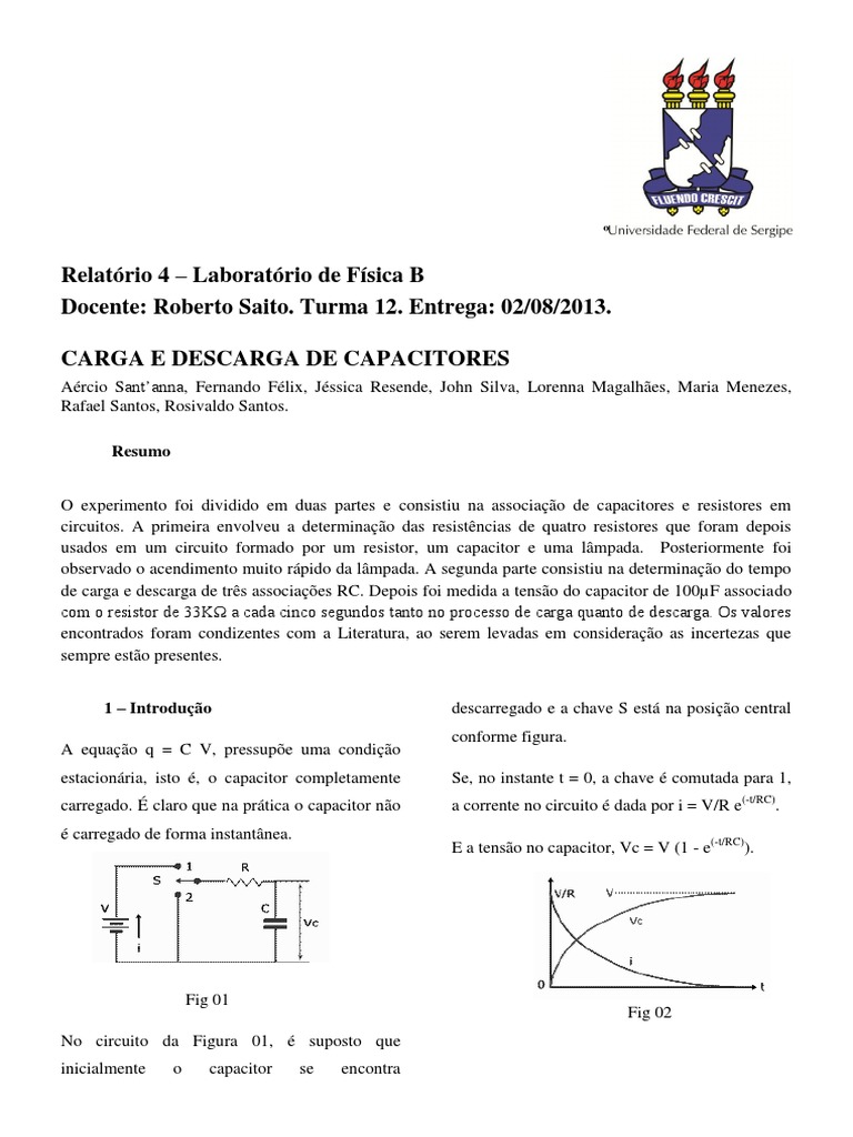 Relatório 4 Carga e Descarga de Capacitores PDF Capacitor